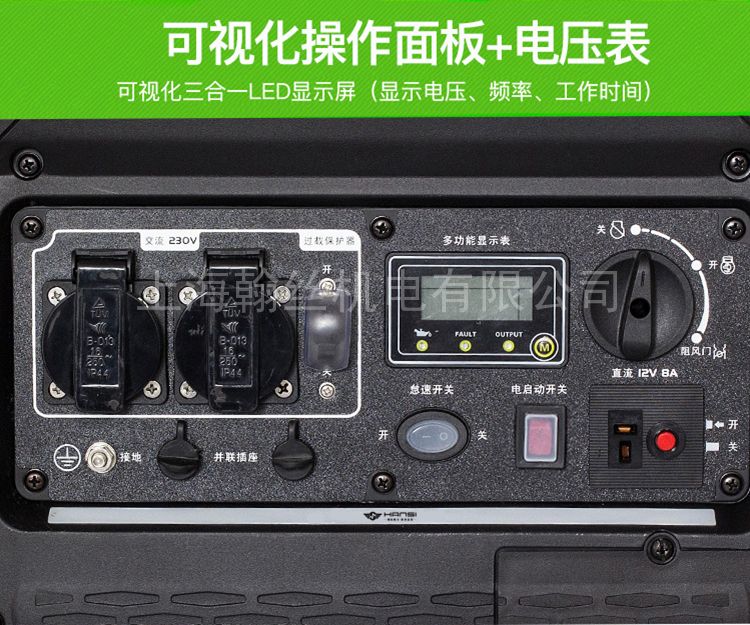 移动式3.5KW数码发电机静音发电机采用逆变器技术的静音发电机,他的许多优点是传统发电机无法比拟的。关键部件是其内部的逆变器。将产生的原始交流电进行“净化”,电流经过“交-直-交”二级转换,使电压输出与发动机转速无关,同时将电压波形畸变降低至很低限度,*终再次转化成洁净,平稳的交流电输出。3500W翰丝静音发电机其波形是光滑的正弦波形。3500W翰丝静音发电机可根据负载实际变化状况来自动调节转速的高低,使得其燃油耗比普通机组要低20%-40%,