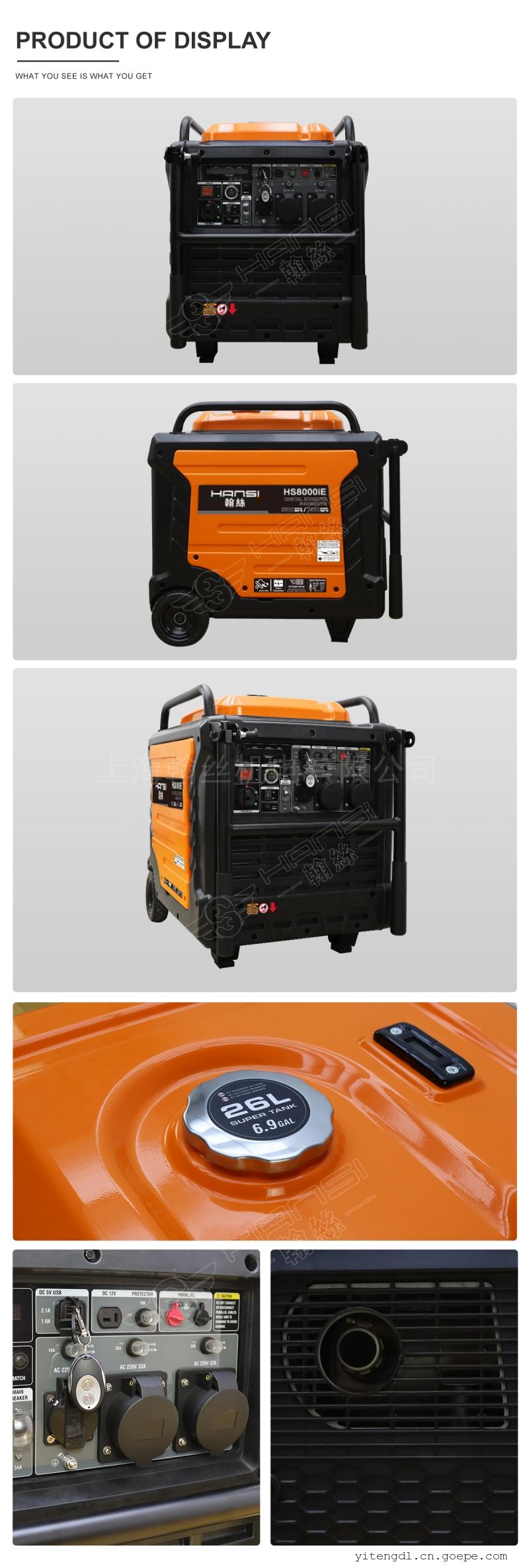 品牌:翰丝 加工定制:是 型号:HS8000iS 相数:单相 发动机型号:225 频率:50 Hz 额定功率:7 KW 额定电压:230 V 起动方式:电启动 输出电压:230 V 7千瓦变频小型发电机